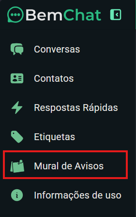 - No menu lateral esquerdo, clique em Mural de Avisos (ícone de notas adesivas/post-it).